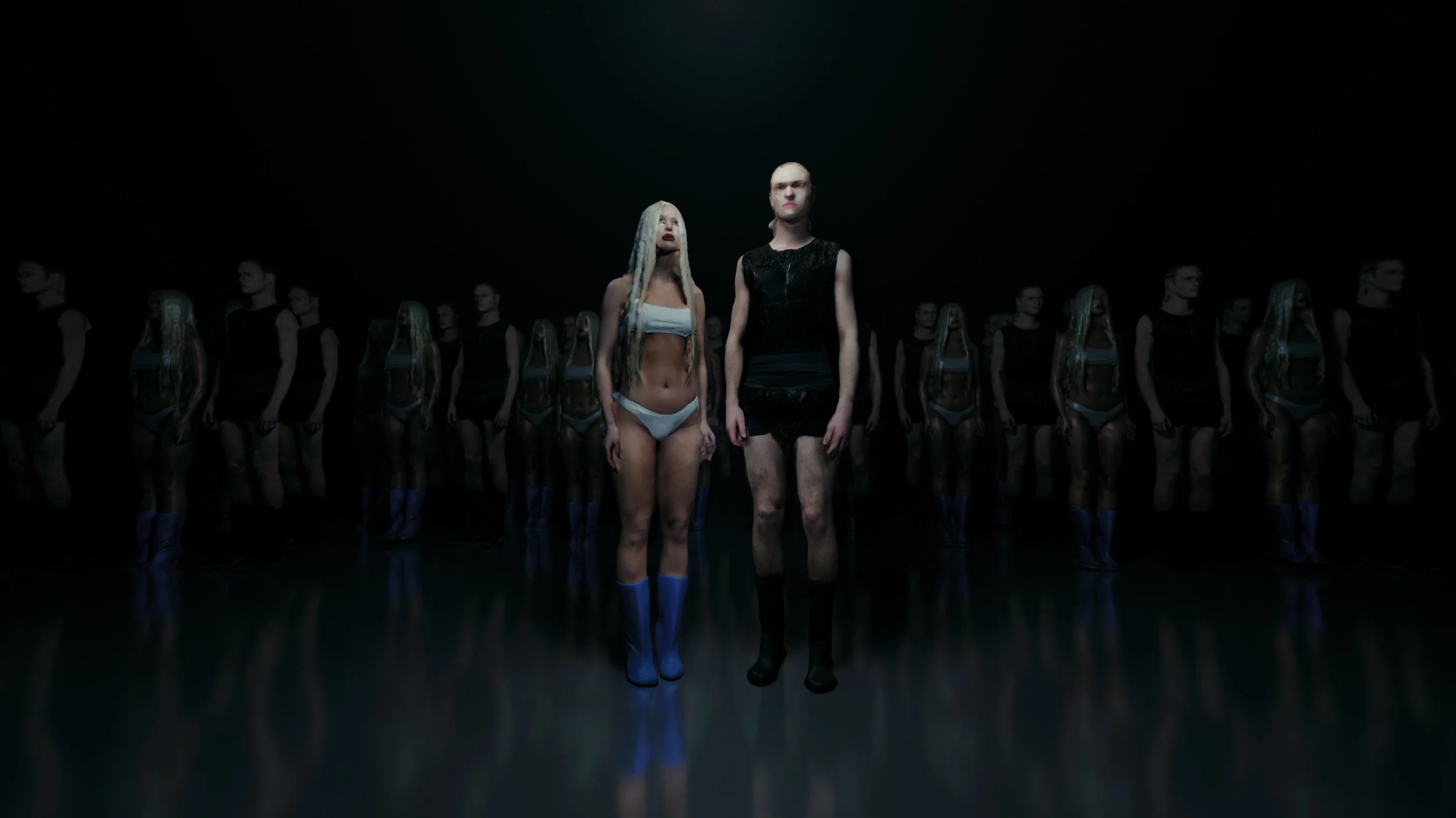 An uncanny intimacy unfolds between human and mannequin—a fragile search for love within the void.